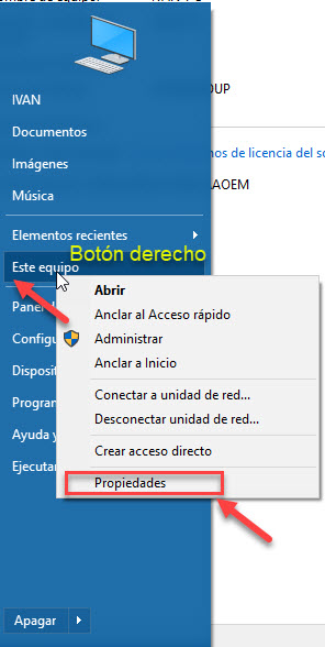 Con el ordenador encendido: Presione con el botón derecho del ratón, sobre: “Este equipo ó Mi Pc” y seleccione “Propiedades” (imagen 1), se le abrirá una ventana de “Información básica acerca del equipo” donde le indica que edición de Windows tiene.